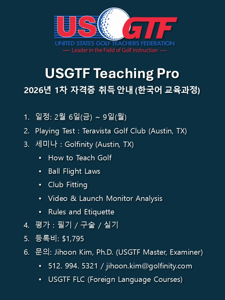 [과외/레슨] USGTF 티칭 프로 라이센스 교육 및 테스트 안내 (2026년 1차)