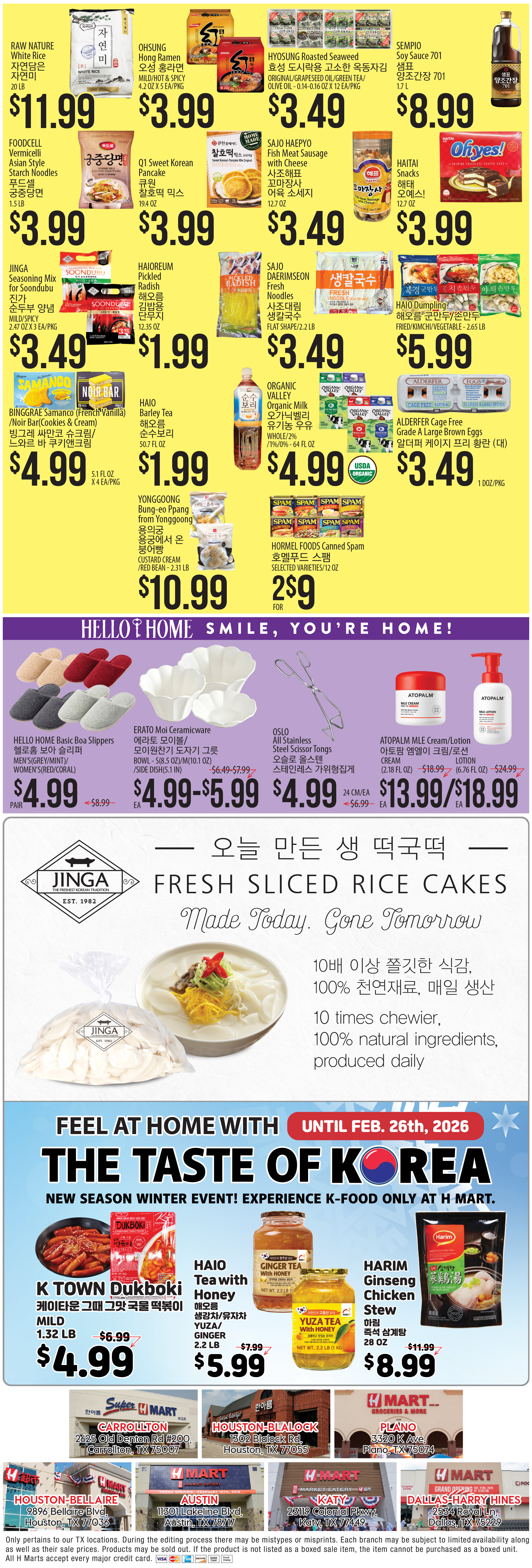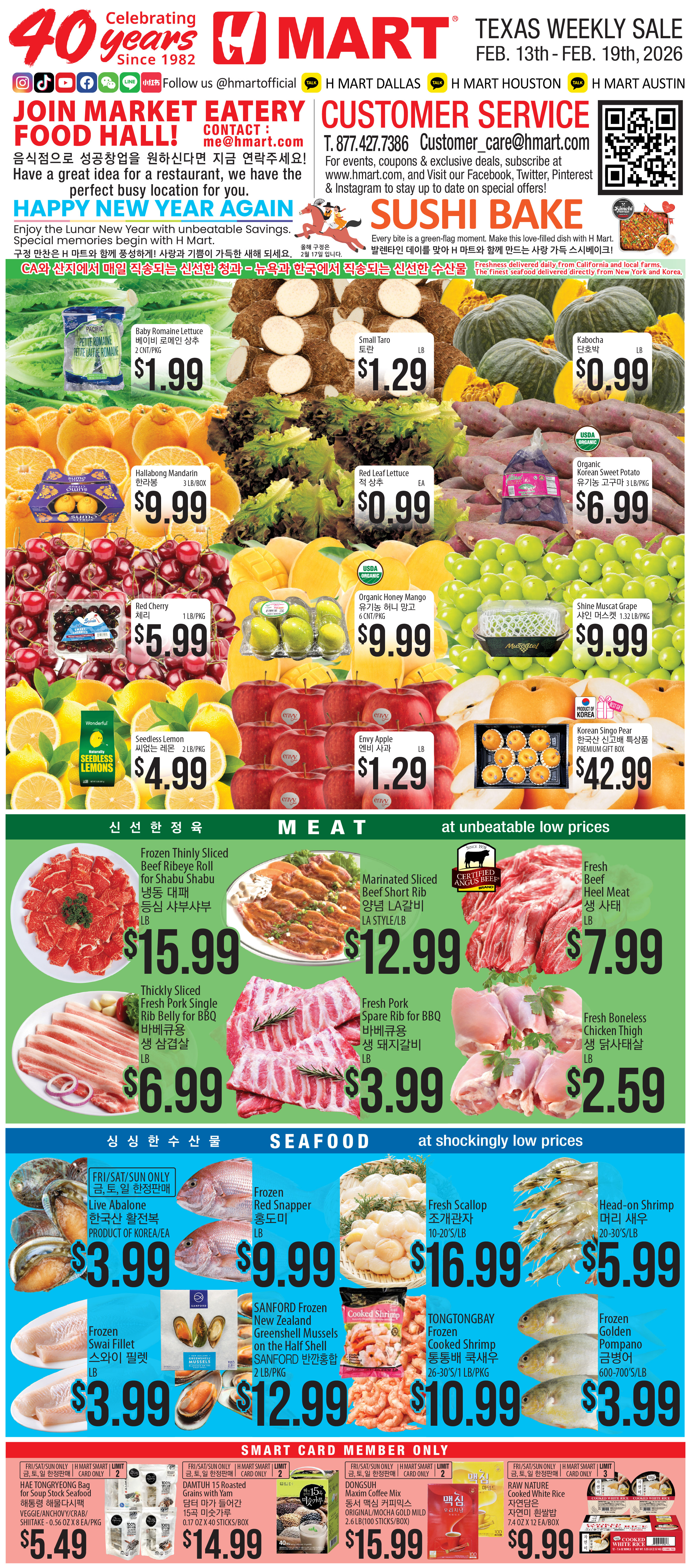 스폰서업체 전용게시판 [H 마트] Weekly Sale (02/13/26-02/19/26) Author H Mart Date 2026-02-12 16:06 Views 673 H MART 02/13/26 - 02/19/26 Like 0 Unlike 0 Print « ★★ 현대 자동차 2026년 2 월 할인 스페셜 & 혜택★★ 한양마켓 *설맞이 SALE 2/13~2/17일까지* » List Total 2,877 Newest Best Viewed Updated Number Title Author Date Votes Views Notice ★★ 스폰서업체 전용게시판 이용안내 (+사진첨부방법) ★★ KSA학생회 | 2016.08.31 | Votes 0 | Views 116209 KSA학생회 2016.08.31 0 116209 2839 New 한양마켓 *Sale 3 days only 3/7~3/9일까지* 한양마켓 | 2026.03.06 | Votes 0 | Views 48 한양마켓 2026.03.06 0 48 2838 New [연 최대$8,000 렌트비 절약]오스틴 아파트 프로모션 확인! 인트라시티와 함께 인트라시티 부동산 | 2026.03.06 | Votes 0 | Views 40 인트라시티 부동산 2026.03.06 0 40 2837 New 교통사고 후 어디로 가야 할지 모르시나요? (치료·변호사 선택 팁) [파워트렉 물리치료] Powertrekpt | 2026.03.05 | Votes 0 | Views 46 Powertrekpt 2026.03.05 0 46 2836 New 기업체 Outdoor Signage, 인쇄, UV DTF·Sublimation, 배너·인쇄·포스터·스티커 (컬러 인쇄 1,000장 $109)—[Won Media Print] WonMediaPrint | 2026.03.05 | Votes 0 | Views 43 WonMediaPrint 2026.03.05 0 43 2835 New [H 마트] Weekly Sale (03/06 ~ 03/12, 2026) H Mart | 2026.03.05 | Votes 0 | Views 109 H Mart 2026.03.05 0 109 2834 New [버클리 아카데미] 여름방학 특강 수강생 모집중! Berkeley Academy | 2026.03.04 | Votes 0 | Views 91 Berkeley Academy 2026.03.04 0 91 2833 New [코웨이 어스틴] 봄부터 가을까지 프리~ 3월 프로모션 Coway Austin | 2026.03.04 | Votes 0 | Views 56 Coway Austin 2026.03.04 0 56 2832 3/2 기준 5.375% 5-Year ARM 안내 (포인트 구매 부담 없이) - 인트라시티 부동산 Intracitytx_j | 2026.03.03 | Votes 0 | Views 88 Intracitytx_j 2026.03.03 0 88 2831 3월 3가지, 큰 혜택 받아가세요.. cuckoo austin | 2026.03.02 | Votes 0 | Views 132 cuckoo austin 2026.03.02 0 132 2830 한양마켓 *Sale 3 days 2/27~3/2일까지* 한양마켓 | 2026.02.27 | Votes 0 | Views 206 한양마켓 2026.02.27 0 206 2829 [H 마트] Weekly Sale (02/27 ~ 03/05, 2026) H Mart | 2026.02.26 | Votes 0 | Views 246 H Mart 2026.02.26 0 246 2828 2026 가온학교 여름캠프 등록안내 (3월 등록 최대 20% 할인) 아이비 아카데미 | 2026.02.24 | Votes 0 | Views 696 아이비 아카데미 2026.02.24 0 696 2827 한양마켓 *Sale 3 days only 2/20~2/23일까지* 한양마켓 | 2026.02.20 | Votes 0 | Views 383 한양마켓 2026.02.20 0 383 2826 [송정혜 부동산] commercial | 라운드락 상업용 오피스 리포트 & 오피스 리스팅 송정혜 realtor | 2026.02.19 | Votes 0 | Views 348 송정혜 realtor 2026.02.19 0 348 2825 [H 마트] Weekly Sale (02/20/26-02/26/26) H Mart | 2026.02.19 | Votes 0 | Views 423 H Mart 2026.02.19 0 423 2824 무료 주택 상태 점검 Spring Check-Up 안내 by 부동산 브로커 필립 차 Broker Philip Cha | 2026.02.17 | Votes 0 | Views 403 Broker Philip Cha 2026.02.17 0 403 2823 한양마켓 *설맞이 SALE 2/13~2/17일까지* 한양마켓 | 2026.02.13 | Votes 0 | Views 623 한양마켓 2026.02.13 0 623 2822 [H 마트] Weekly Sale (02/13/26-02/19/26) H Mart | 2026.02.12 | Votes 0 | Views 673 H Mart 2026.02.12 0 673 2821 ★★ 현대 자동차 2026년 2 월 할인 스페셜 & 혜택★★ Jay Park | 2026.02.09 | Votes 0 | Views 991 Jay Park 2026.02.09 0 991 2820 [코웨이 어스틴]2월 설맞이 프로모션 Coway Austin | 2026.02.09 | Votes 0 | Views 637 Coway Austin 2026.02.09 0 637 12345678910»Last All Title Content Author Search Powered by KBoard