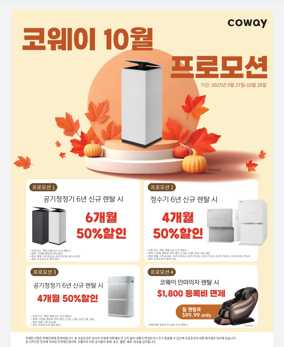 [코웨이 어스틴] 코웨이 가을맞이 10월 프로모션