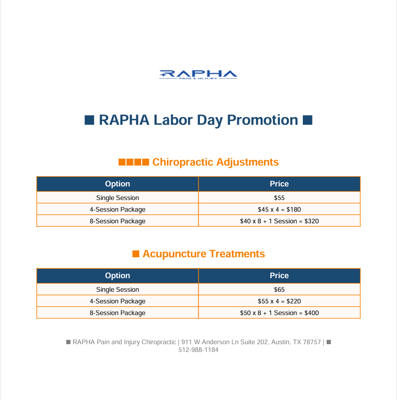 RAPHA CLINIC LABOR DAY 프로모션 09/01/2025- 10/01/2025