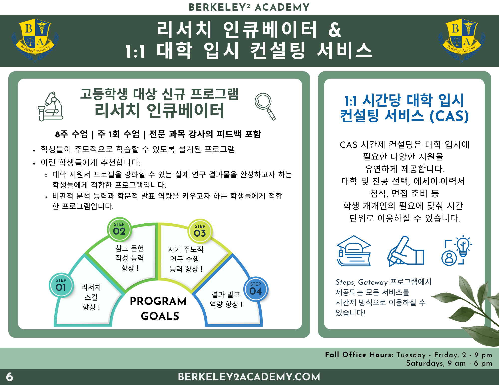 구성: Steps / Gateway / CAS 1:1 Counseling