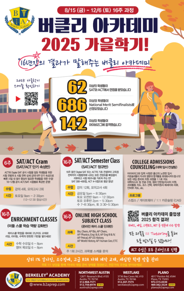[버클리 아카데미] 11월 SAT 특강 ! 지금 등록 하세요