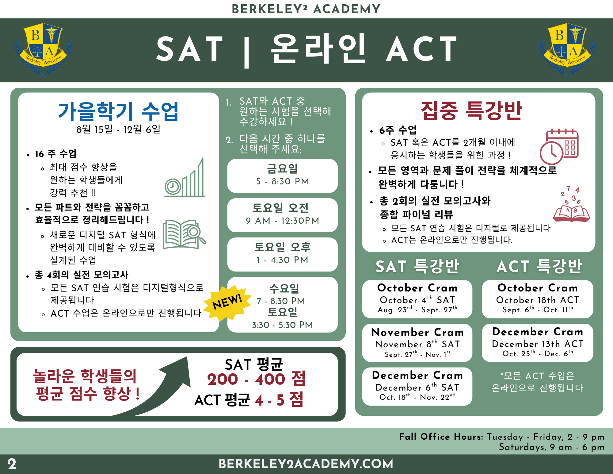 버클리 아카데미와 함께하는 2025 가을학기 – 지금이 학업과 입시의 골든타임입니다