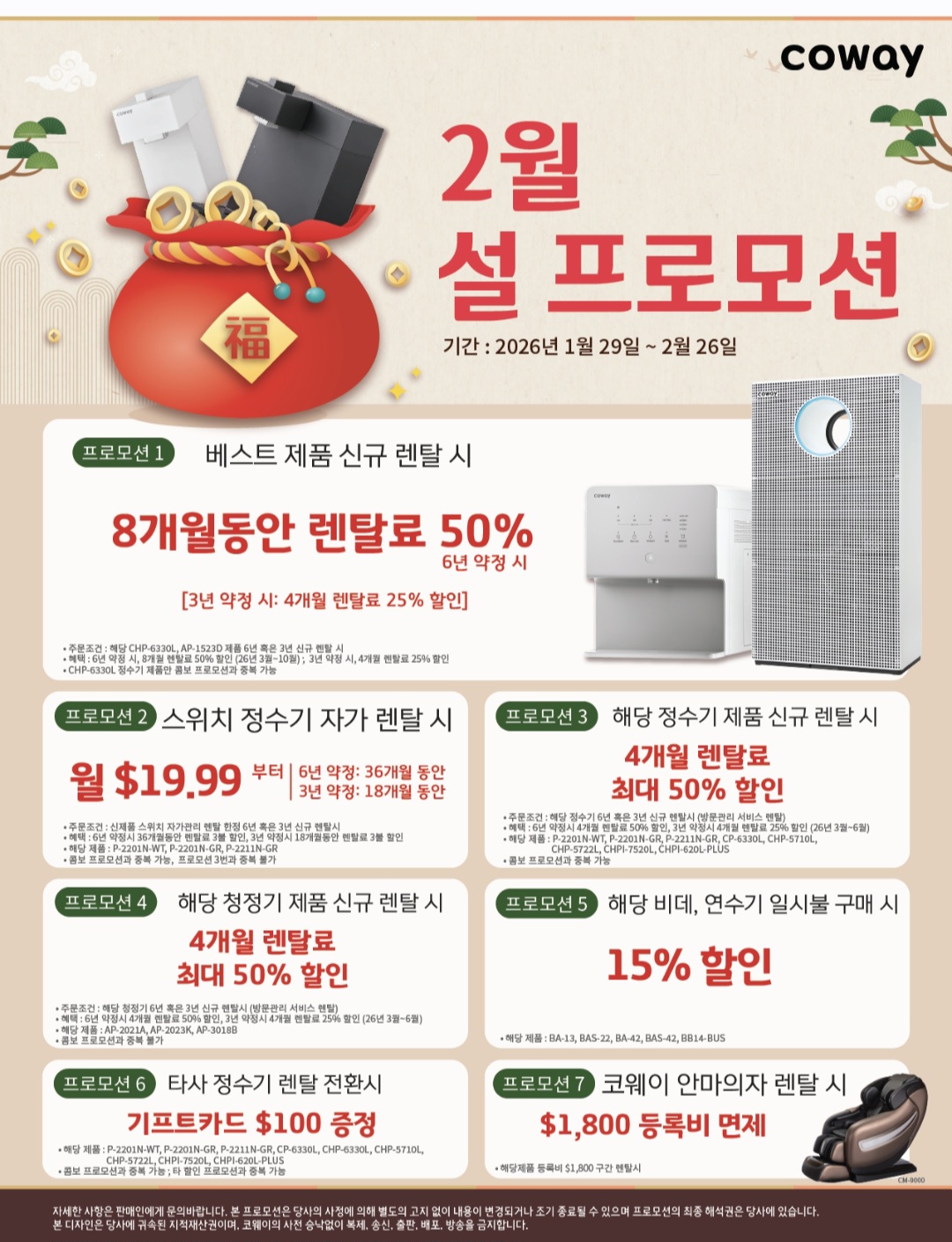 좋은물, 맛있는물, 깨끗한공기 코웨이에서 2월 프로모션을 알려드립니다.