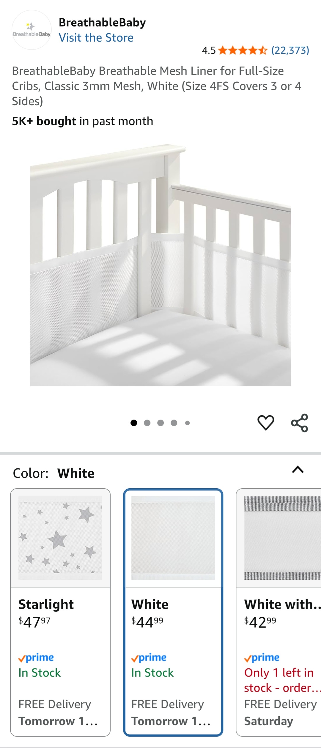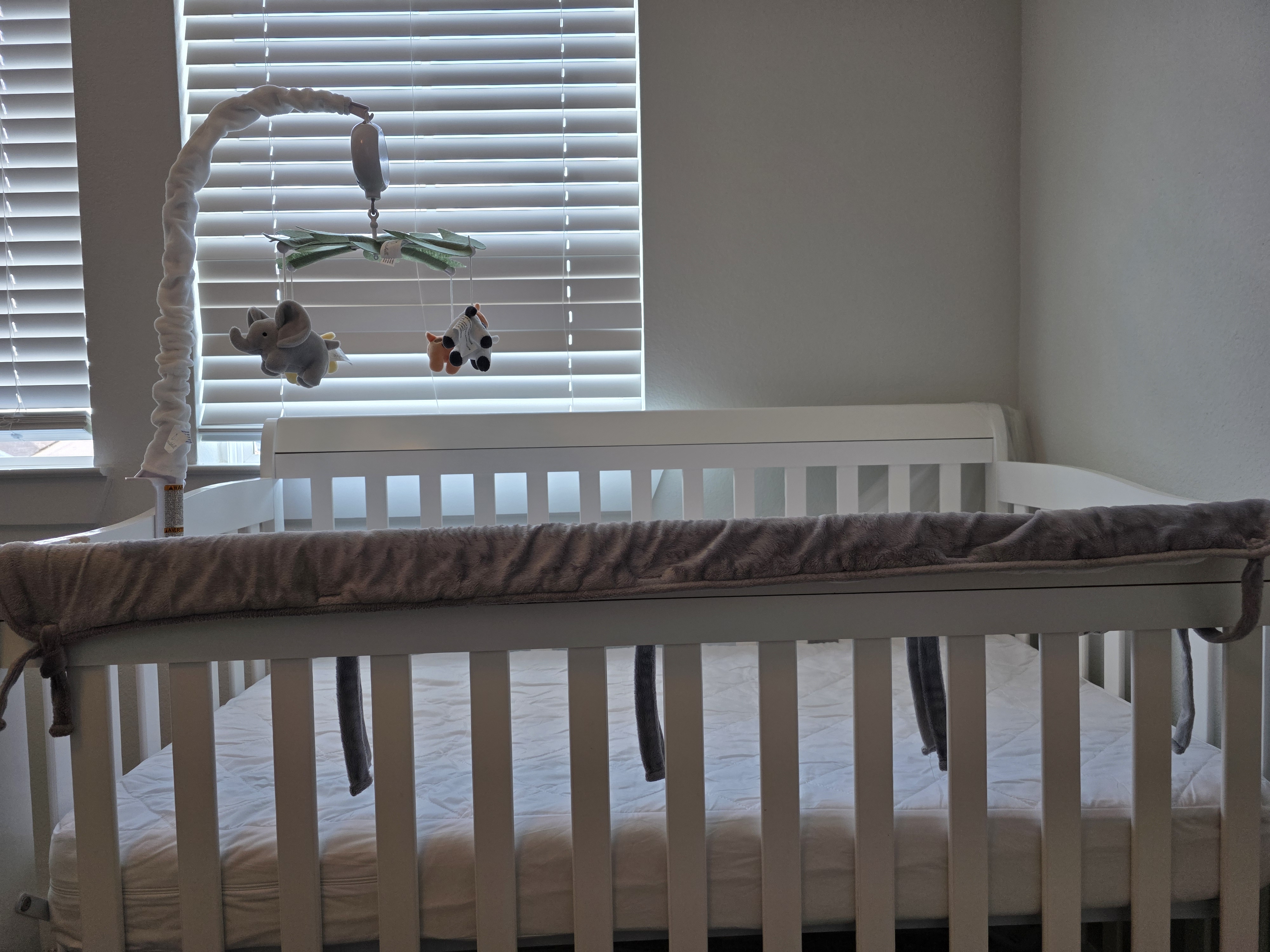 - 아기 크립 + 매트리스 + 방수 매트리스 커버(새상품) + 모빌 + 레일커버 + 메쉬 라이너(새상품) 모두 포함 $80