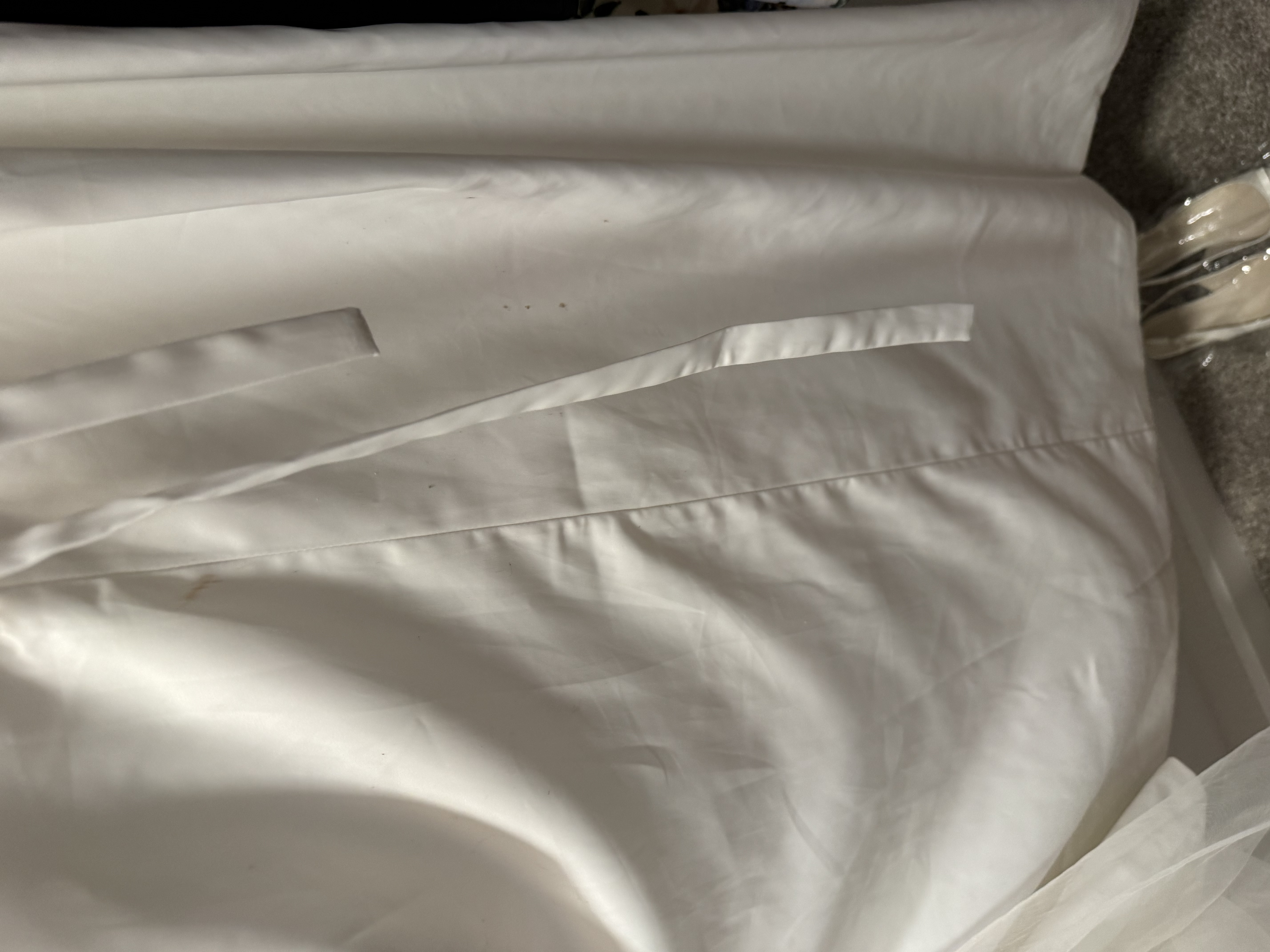 야외에서 웨딩촬영할때 한번 입었습니다. 야외 잔디밭에서 입고 촬영하다보니 밑단에 얼룩 및 흙자국 조금 묻었구요 (입으면 티 안남)