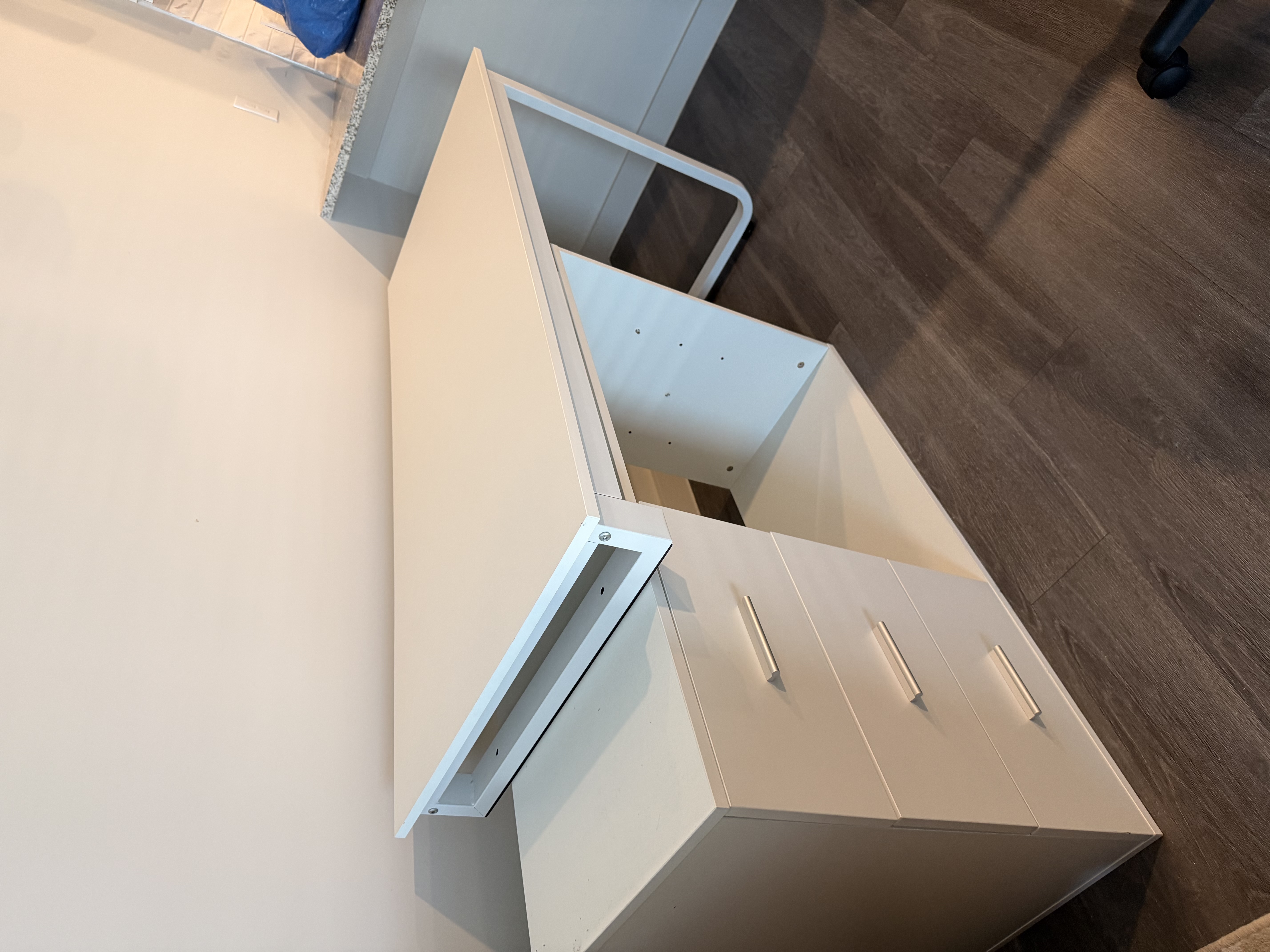 책상 with 서랍과 데스크 의자 팝니다.책상은 옮기는 과정에서 조금 상처가 있었으나 눈에 크게 띄지는 않고 L shape이나 일자 모두 가능해요.