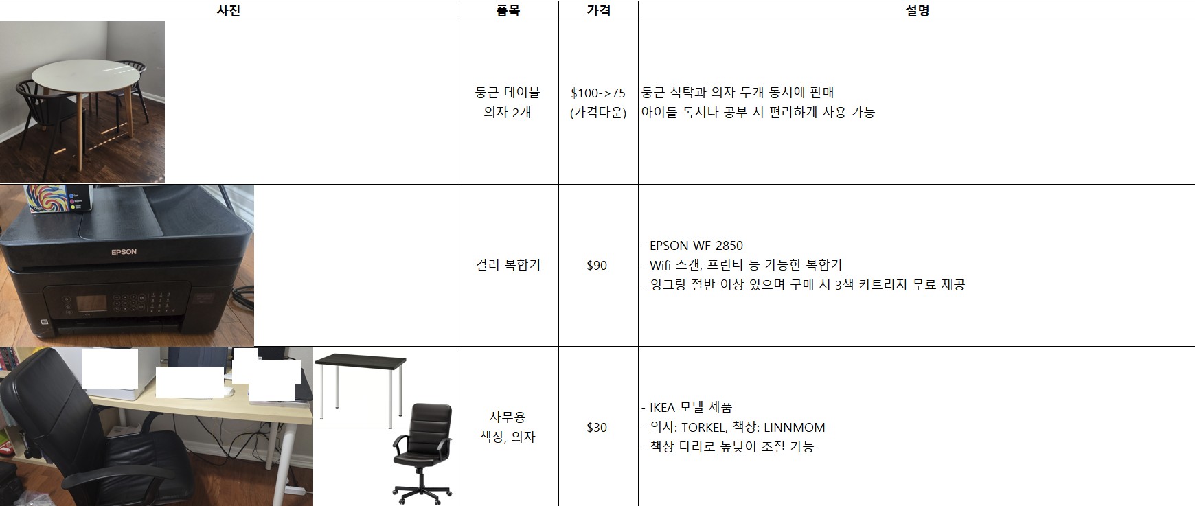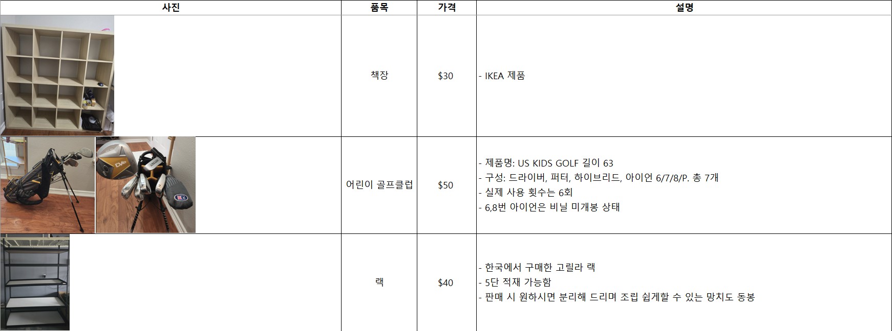 이사정리합니다. 이케아 책장잭상의자,골프클럽,신발선반, 화이트샌드썰매, 둥근식탁&의자,Epson 복합기, Playstation2,