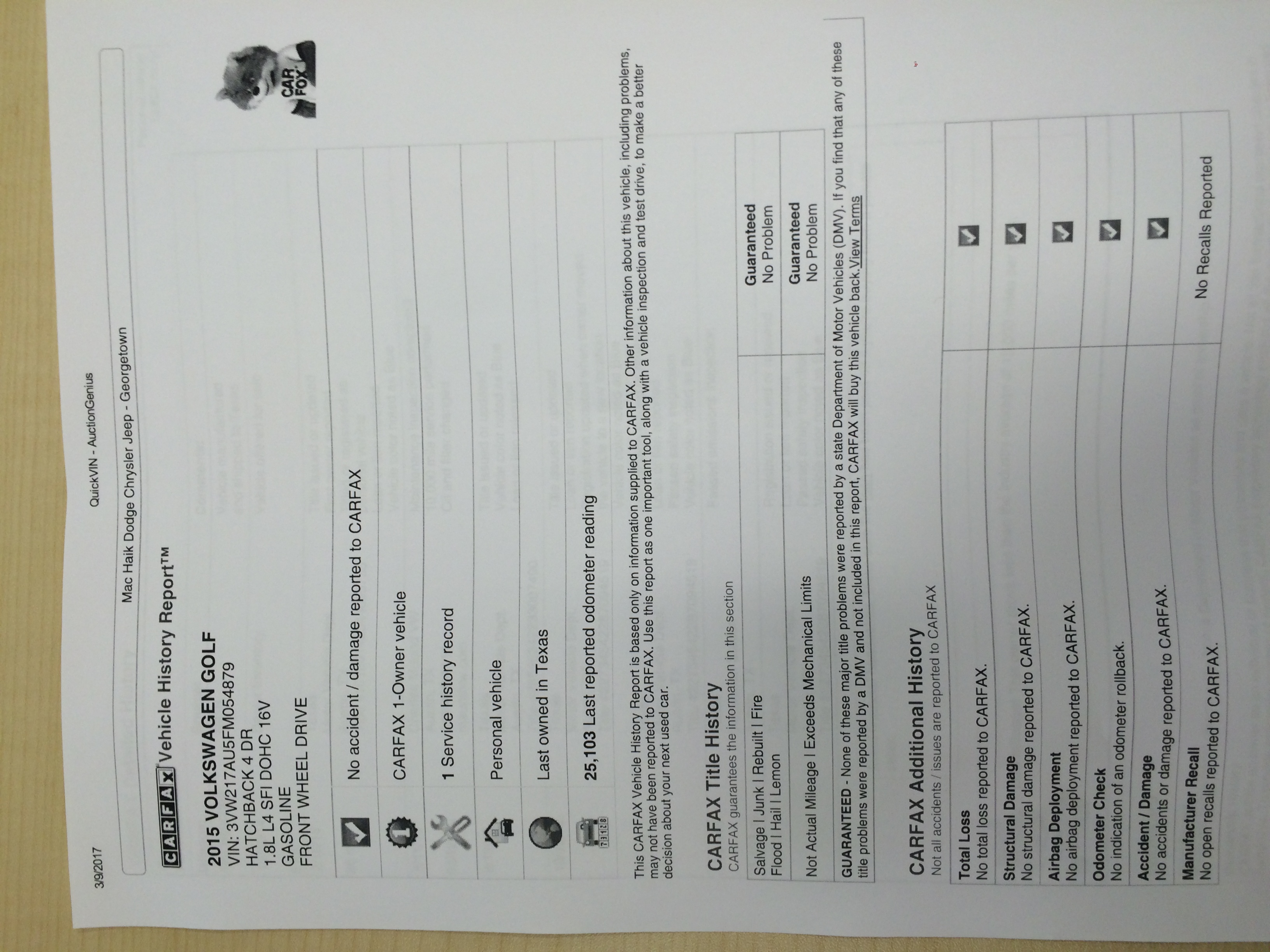 판매완료- Volks wagen golf 2015 판매(carfax 첨부)