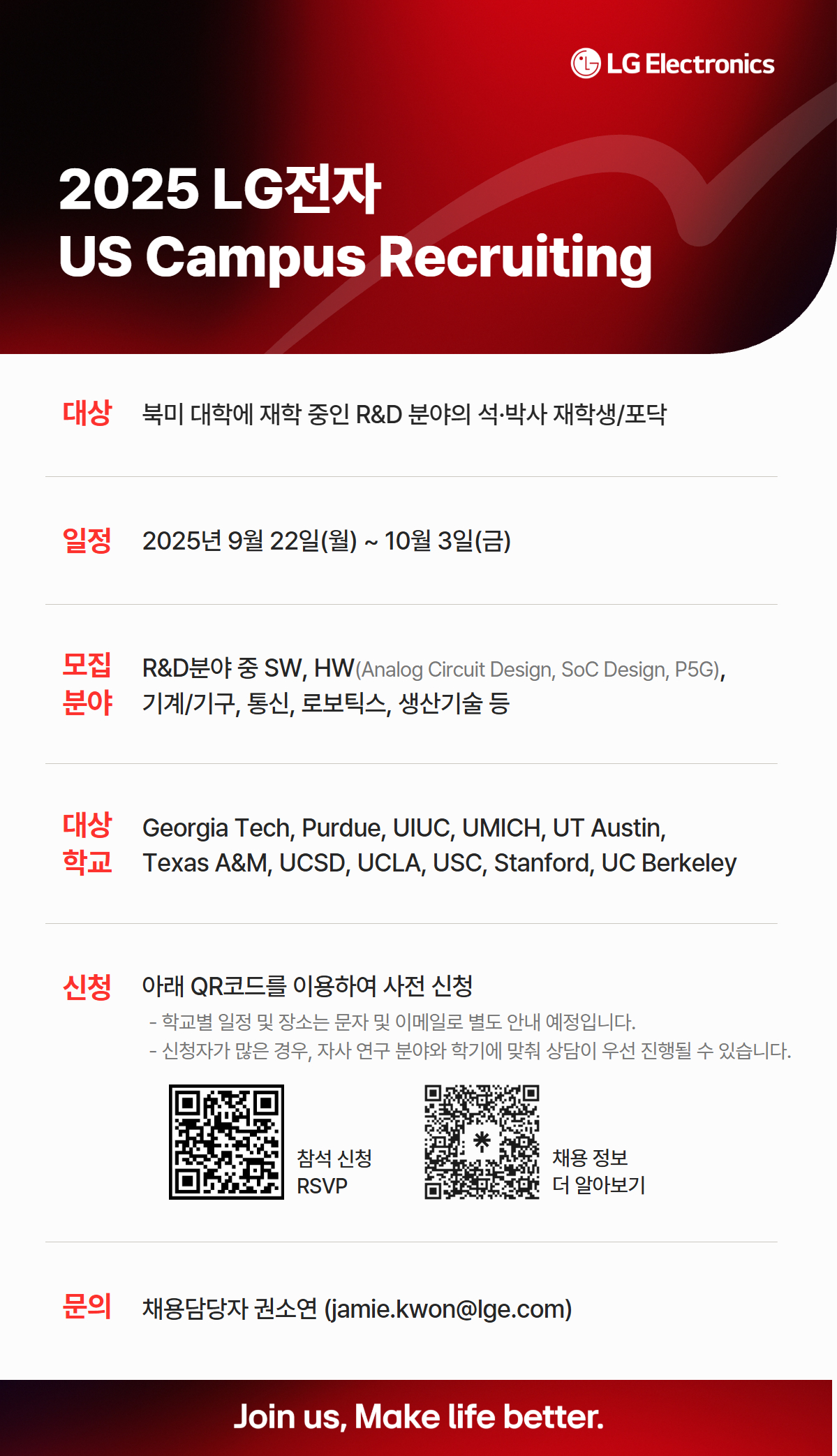2025 하반기 LG전자 해외 R&D 석·박사 인재 채용 | UT Austin
