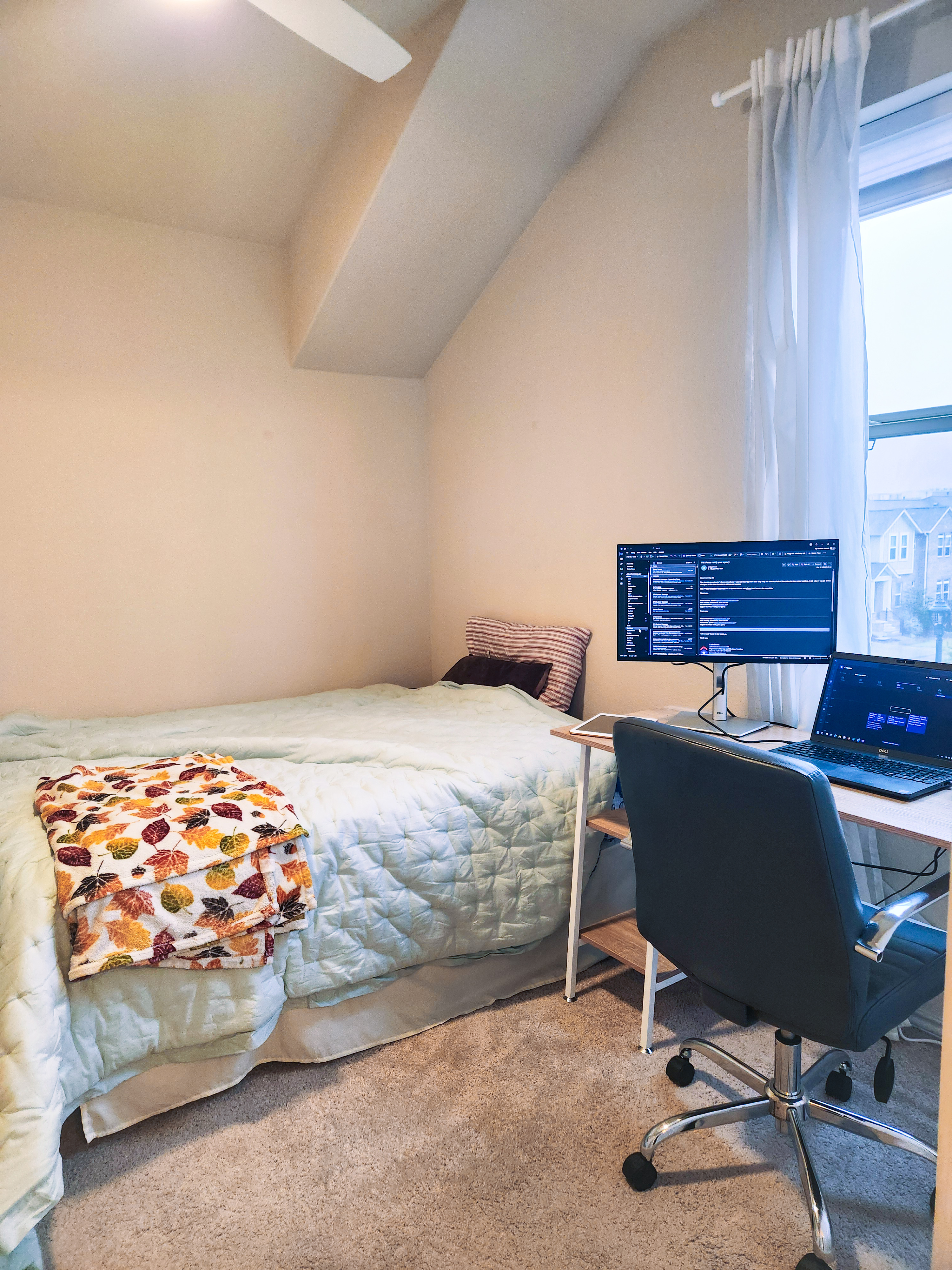 HEB는 걸어서 5분, UT 가는 버스도 거기 있고요, 주방과 거실은 2층에 있고 같이 쓰시면 됩니다. 공원도, 식당가도 도보로 5+분 안에 있고 주차도 편안합니다.